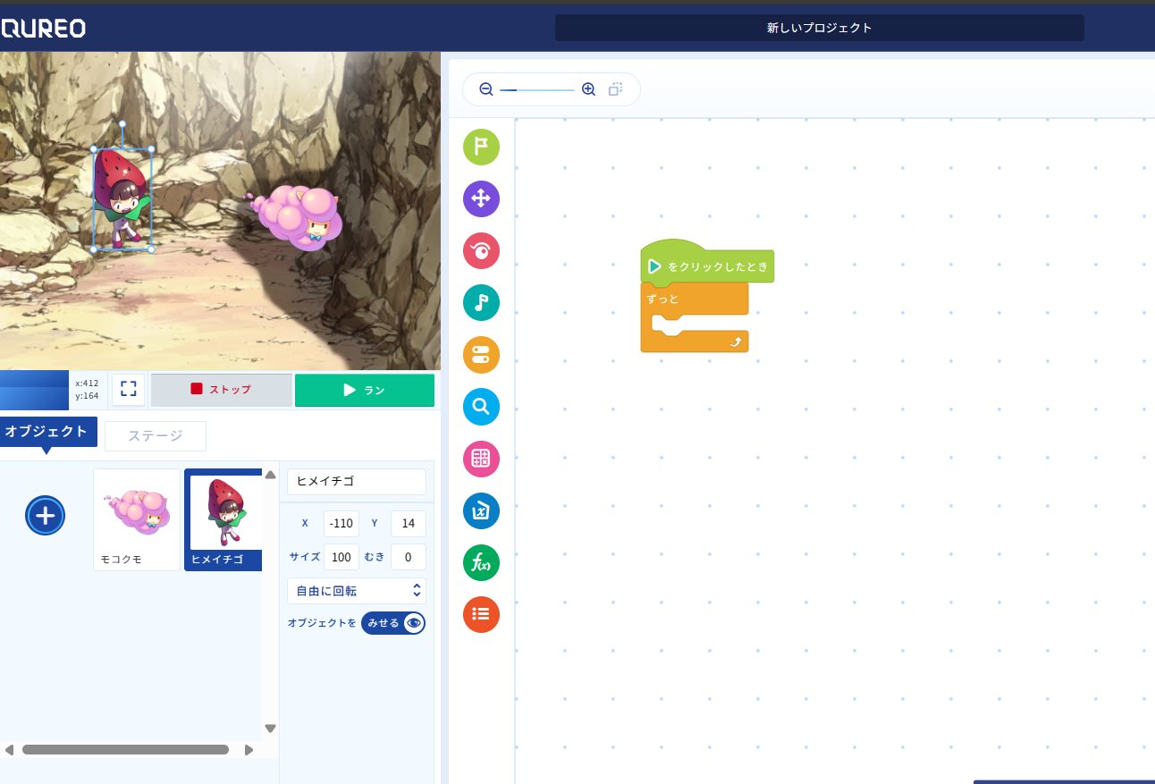 自分でストーリーを創作し、論理的に考え、自分の思い通りにプログラムでき、イメージを具現化したものを、他の人に説明できる能力を養う場となるように、有意義な時間を過ごしてもらいたいと考えております。