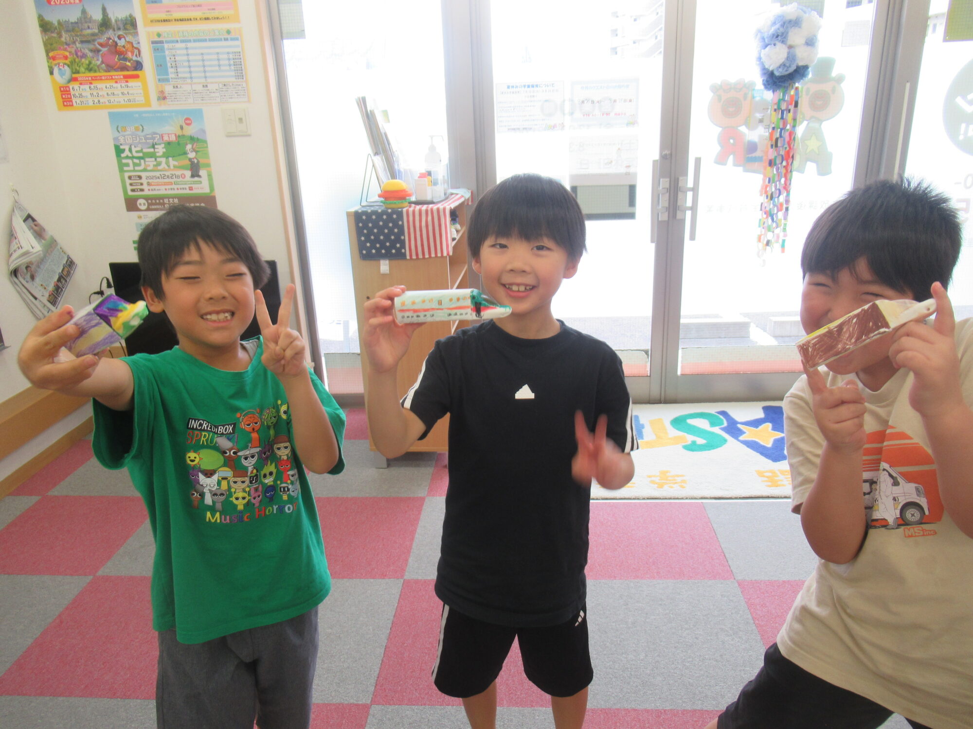 前編の時より、子供たちも慣れていたのかサクサク作っていて実際に使って遊ぶ時間も多く、大満足のようすでした!☺️